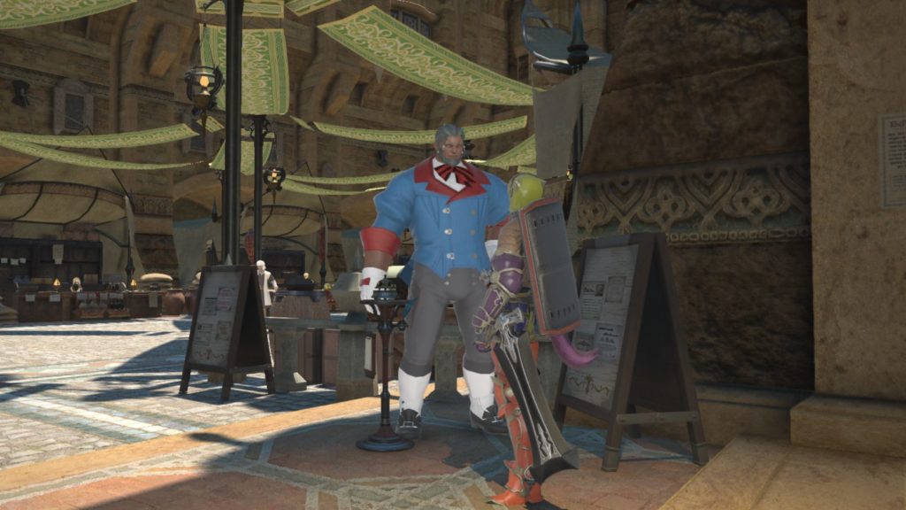 リテイナーベルから呼び出せます。このでっかいルガディン↓(ニックネームDekkaidou)が、今回雇ったリテイナーさんです。