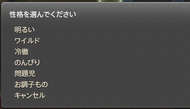 外見の設定が終わると、性格を選びます。男性と女性で選択肢が違うかも。