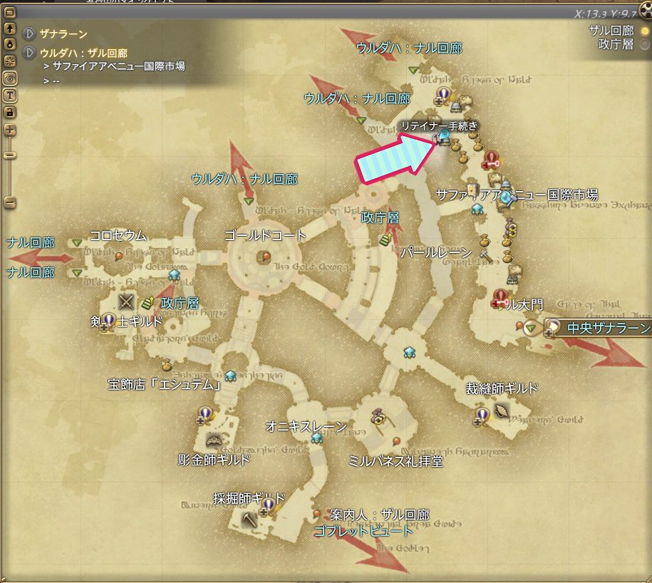 リムサ・ロミンサ/グリダニア/ウルダハのリテイナー雇用窓口の場所をMAP付きで紹介します。
