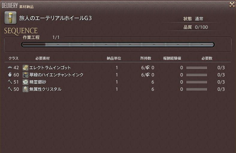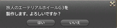 ③「旅人のエーテリアルホイールG3を製作します。よろしいですか」→「はい」→「素材を納品する」